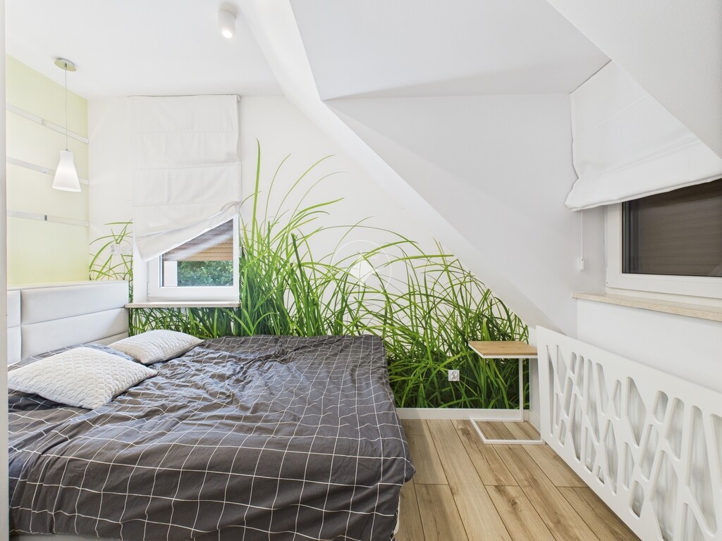 Dom wolnostojący z bezpośrednim dostępem do jeziora, wykończony w wysokim standardzie, o powierzchni użytkowej 105 m2 + ogród zimowy 46 m2, położony na działce o powierzchni 550 m2, w bardzo dobrze skomunikowanej, a zarazem spokojnej lokalizacji.