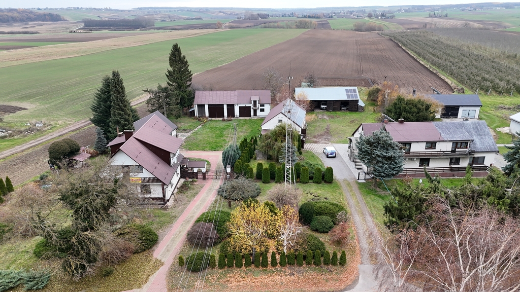 Na sprzedaż dom wolnostojący o powierzchni około 100 m², położony na dużej działce o powierzchni 4268 m² (0,42 ha). W skład nieruchomości wchodzi dom po generalnym remoncie wnętrz wraz z zabudowaniami i dużą przestrzenią użytkową na własną działalność.