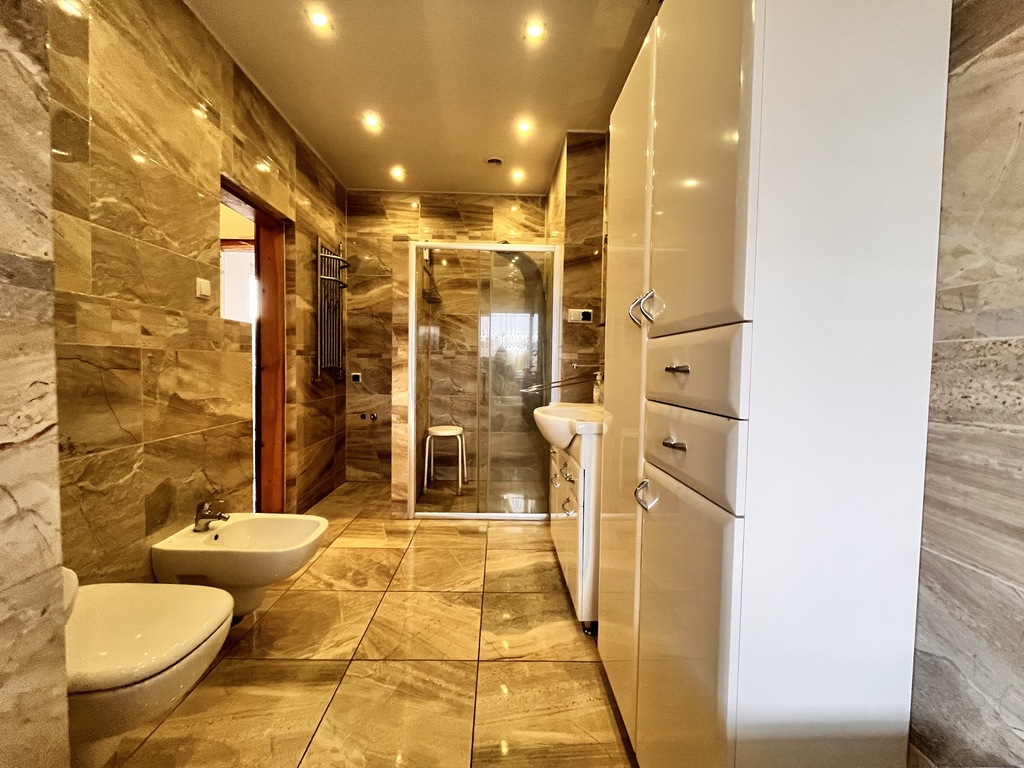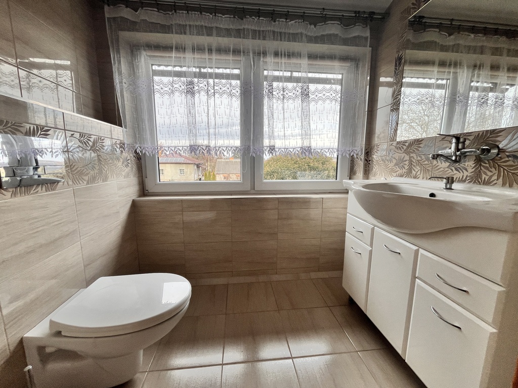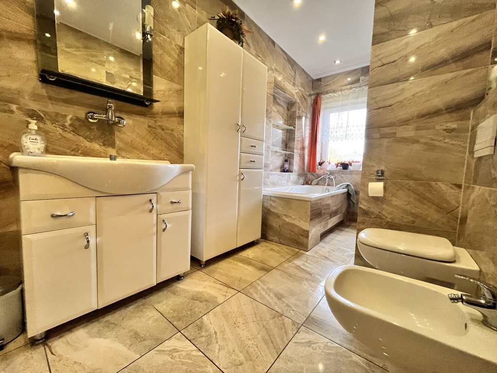 - dużą, rodzinną łazienkę z wanną i prysznicem,
