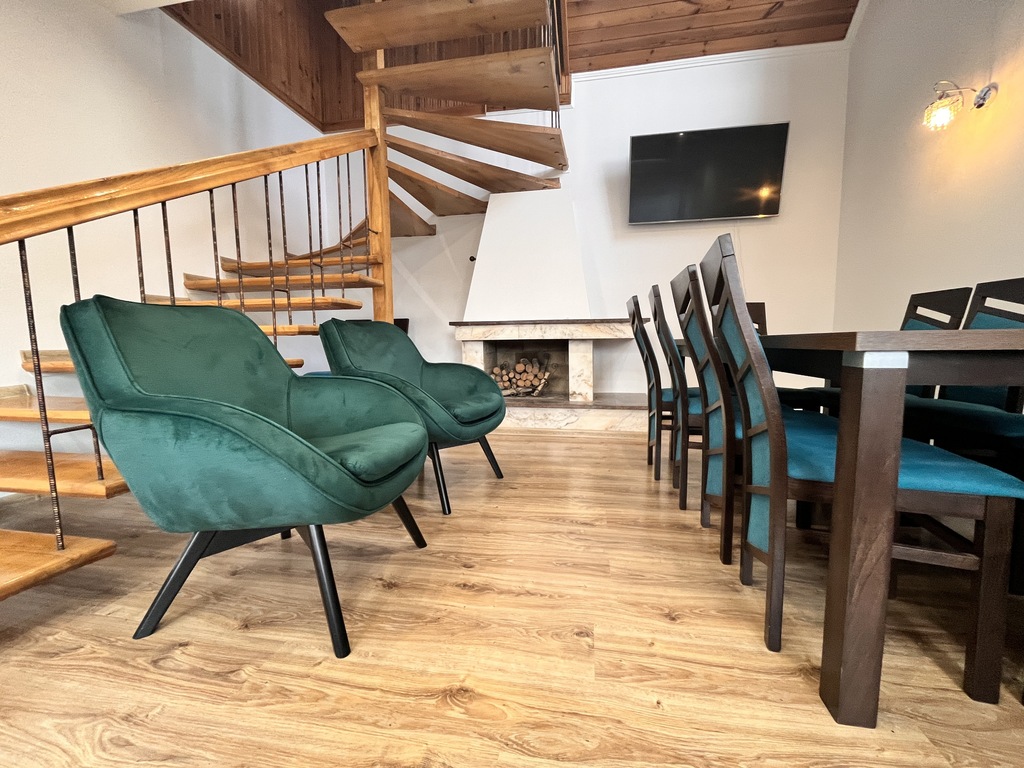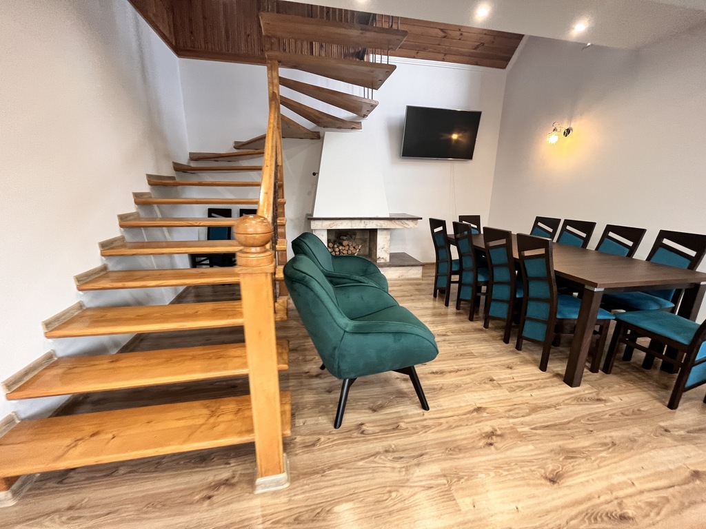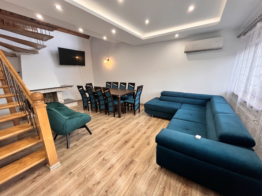- przestronny, umeblowany salon z kominkiem,