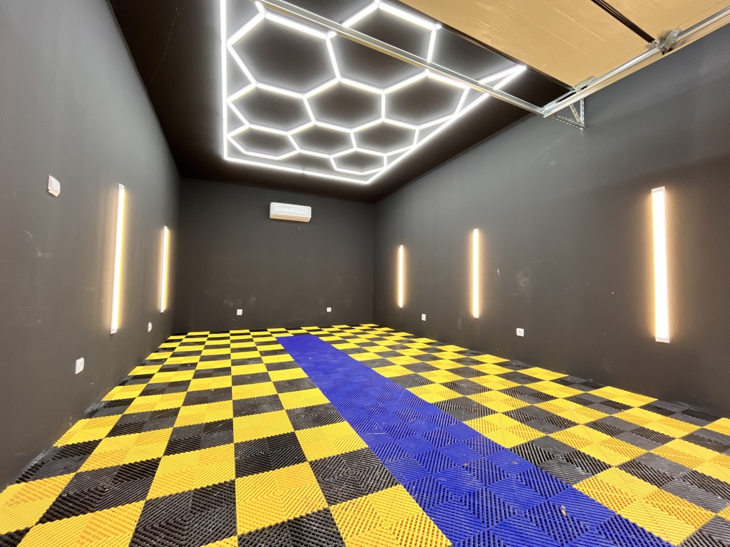 - Niespotykana przestrzeń designerskiego garażu z nowoczesnym oświetleniem - będzie idealna dla fana motoryzacji