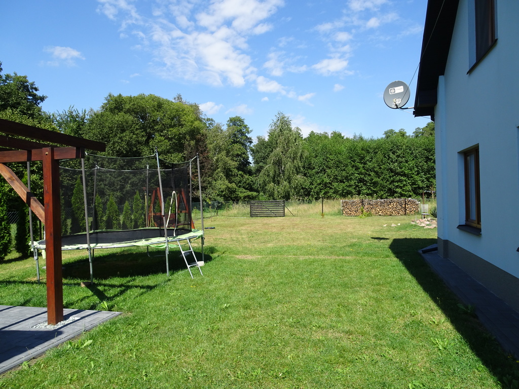 Działka jest długa, pełna zieleni, w części zalesiona. Dom sprzedawany z pełnym wyposażeniem.
