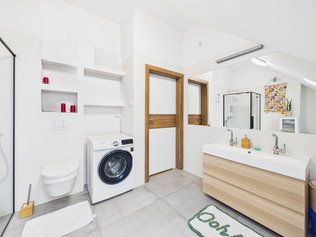 Dom jest wyposażony we wszelkie nowoczesne udogodnienia - panele PV, pompa ciepła, ogrzewanie podłogowe z pełną automatyką sterowaną z każdego pomieszczenia niezależnie, rekuperacja + gruntowy wymiennik ciepła. Wybudowany z betonu komórkowego termalica.