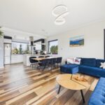- salonu z aneksem kuchennym i wyjściem na taras i ogródek