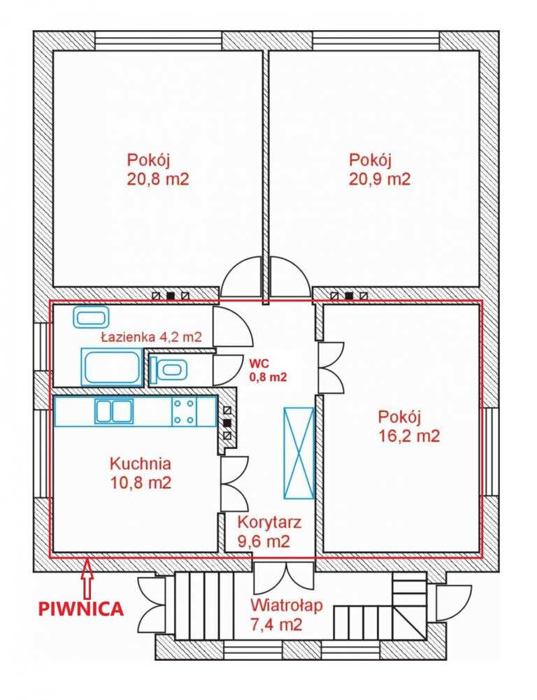 Dodatkowym atutem jest piwnica o powierzchni ok. 40 m², idealna na kotłownię, pralnię, spiżarnię lub pomieszczenia gospodarcze.
