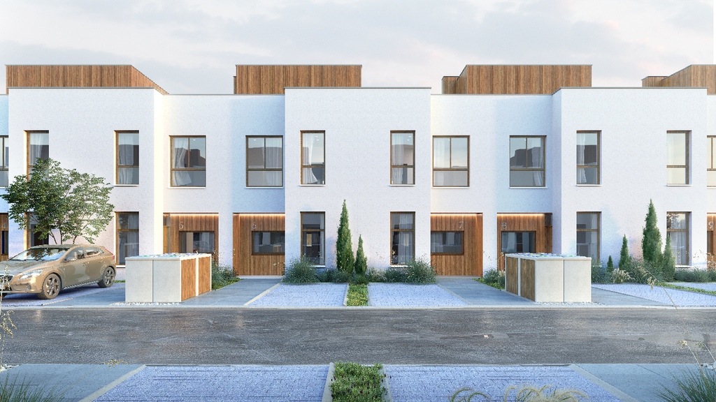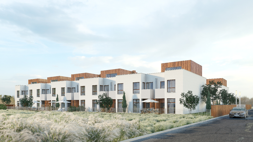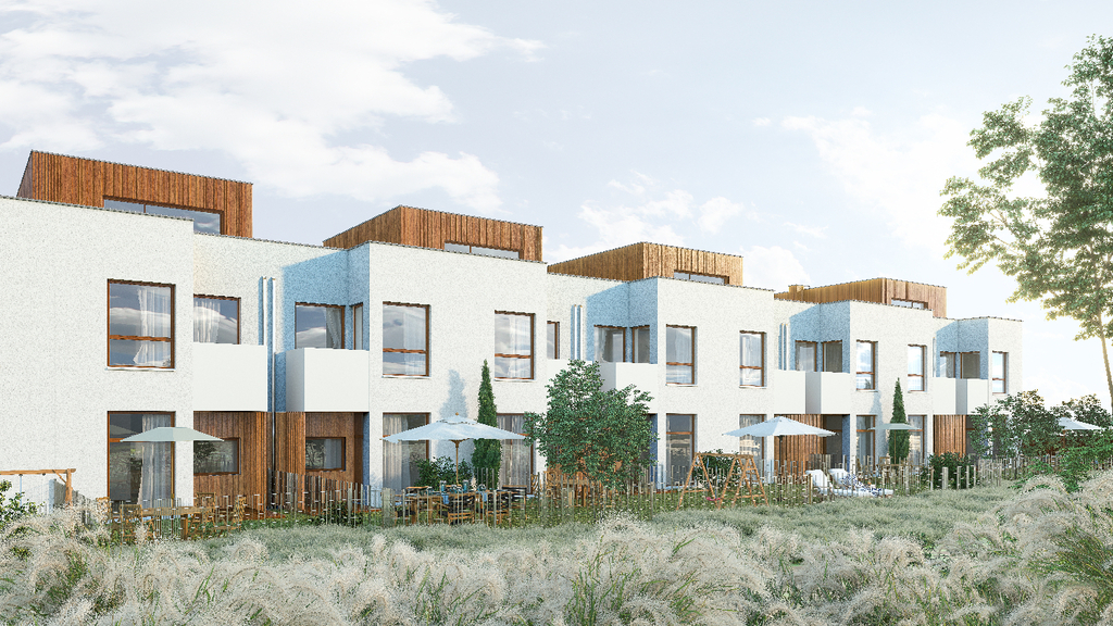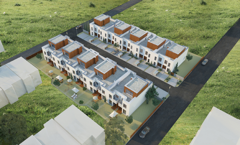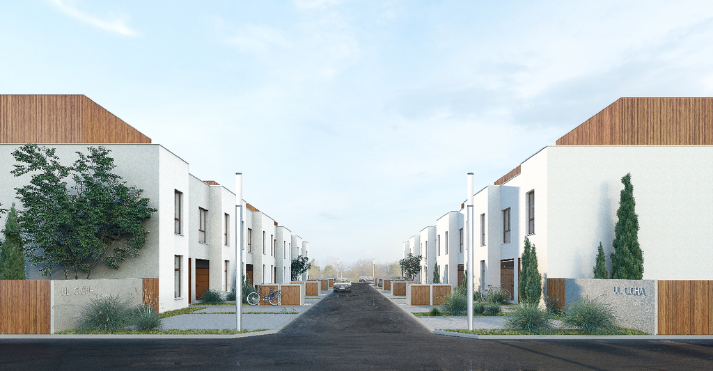 Dom w zabudowie szeregowej o powierzchni użytkowej 134,09 m2 z ogródkiem i miejscem postojowym przy podjeździe.