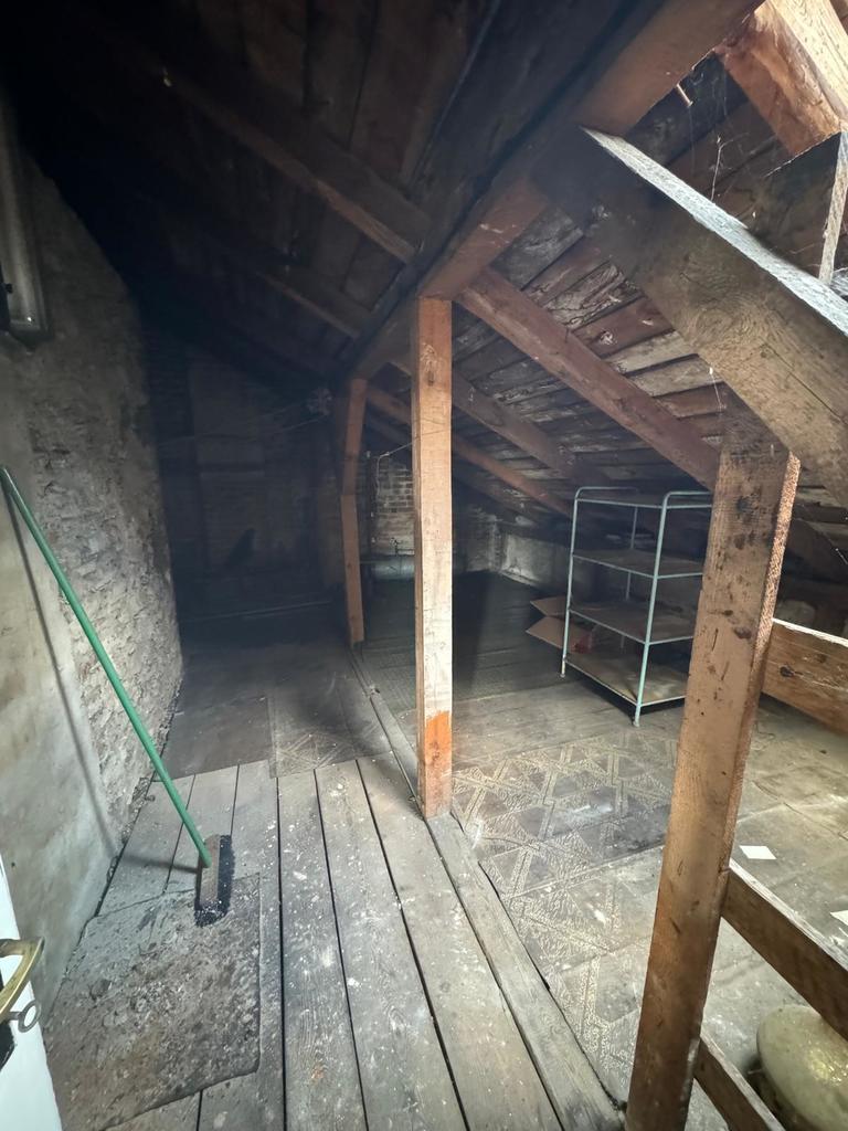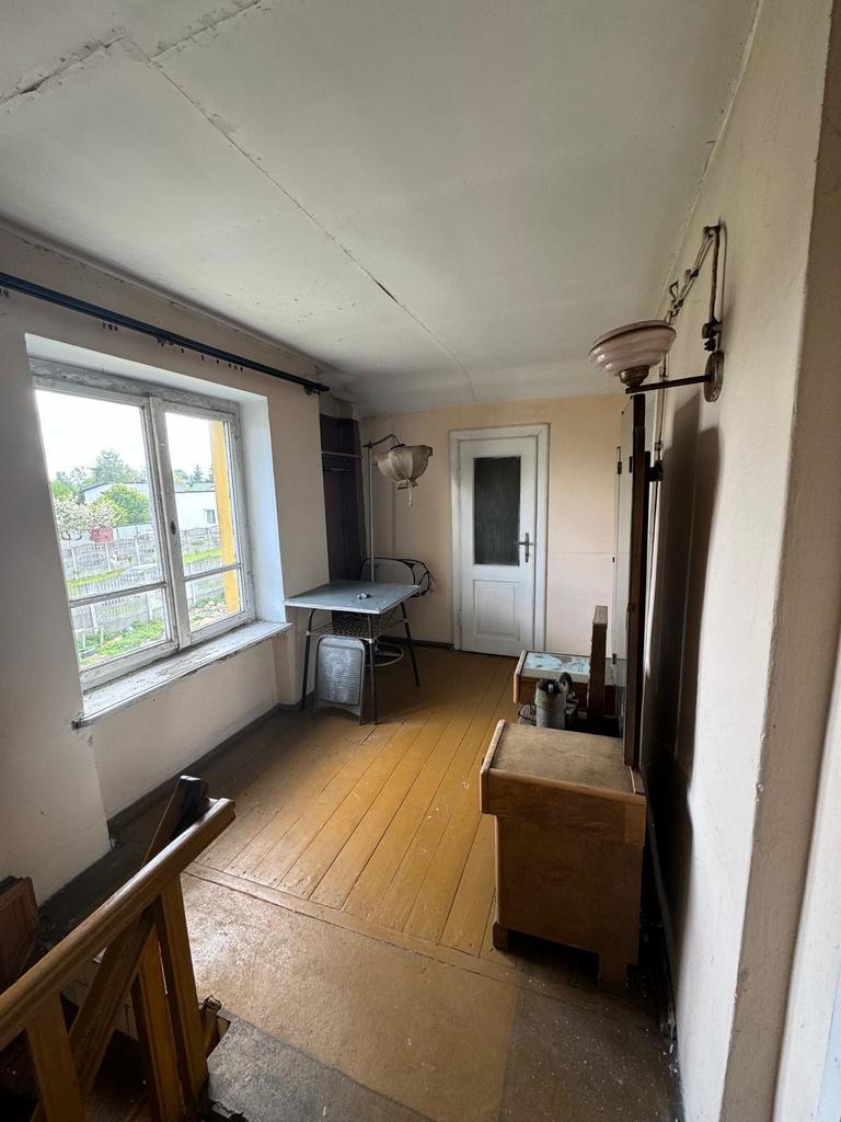 Na poddaszu możliwość urządzenia dużego pokoju z łazienką . Woda i kanalizacja miejska . Dom przyległy ścianą zachodnią do sąsiada .