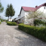 Cały teren jest ogrodzony, podjazd wyłożony kostką, teren wokół budynków w pełni zagospodarowany (oczko wodne, krzewy oraz trawnik).