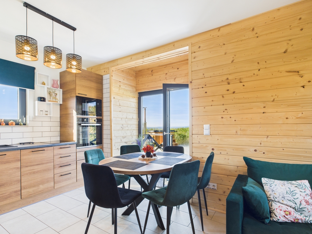 - przestronny salon z aneksem kuchennym i jadalnią, z wyjściem na taras,