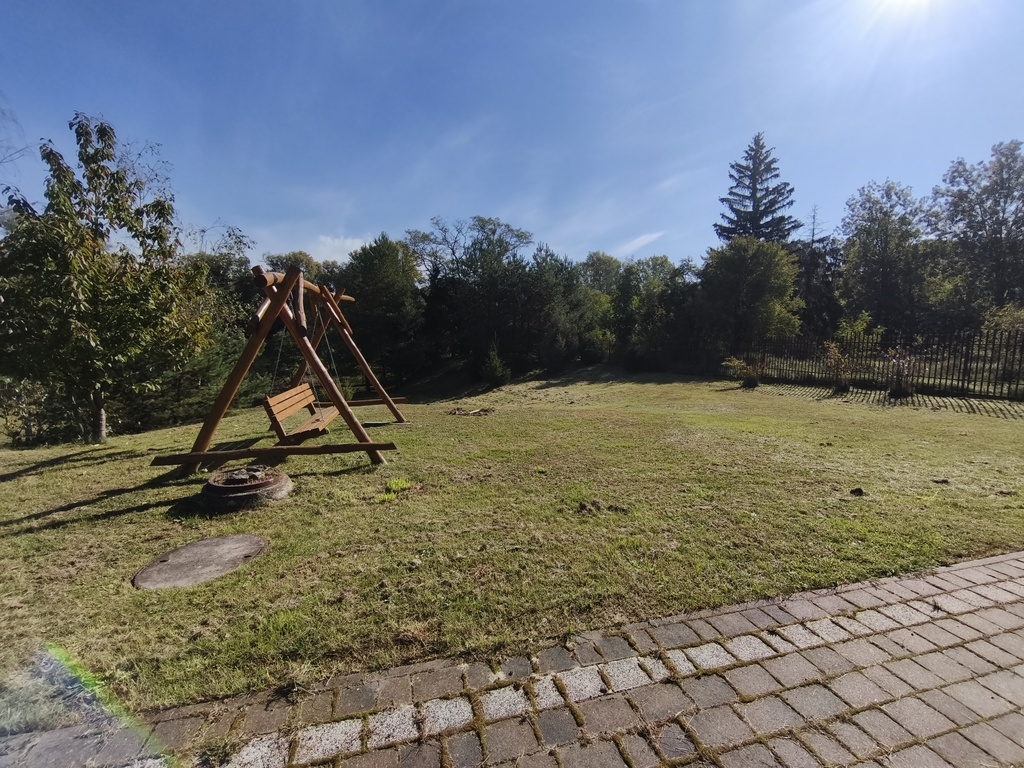 Na działce liczne nasadzenia drzew i krzewów, winorośl, zadbany ogród oraz dużo przestrzeni do rekreacji.