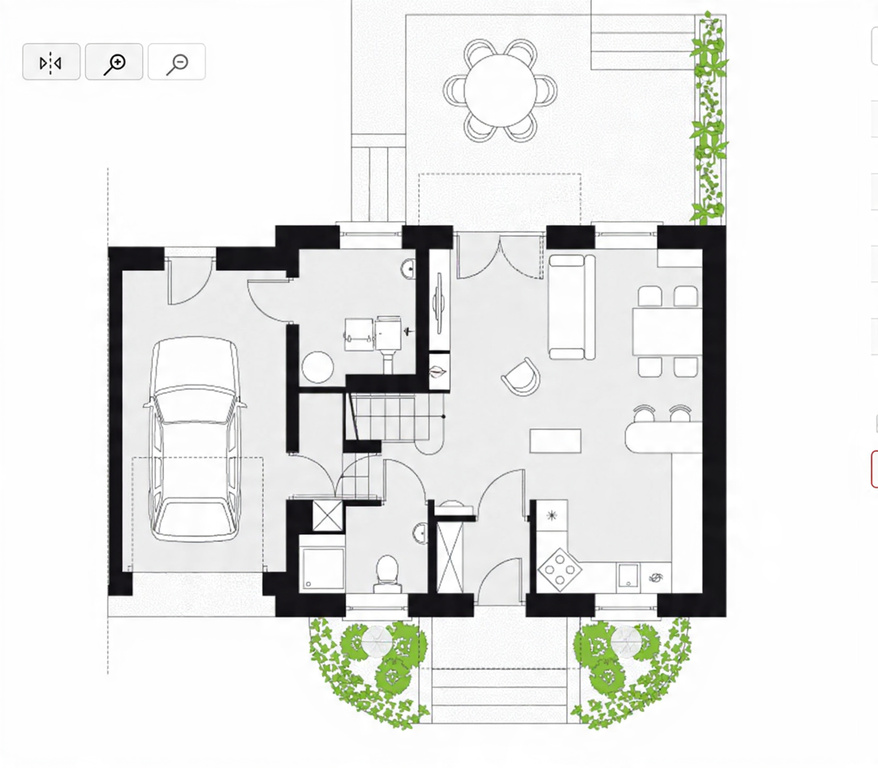 Układ pomieszczeń: Parter: - przestronny salon z jadalnią i wyjściem do ogrodu