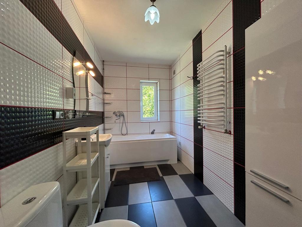 - Ogrzewanie: piec węgiel/drewno oraz ogrzewanie podłogowe w kuchni, na korytarzu i w łazienkach.
