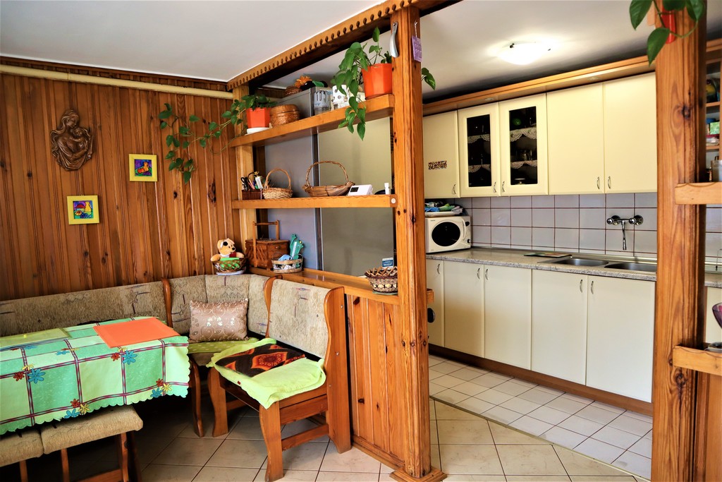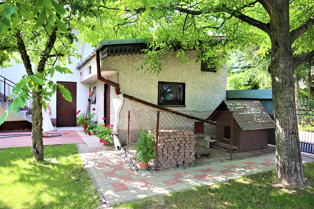 Dom utrzymany jest w bardzo dobrym stanie i gotowy do natychmiastowego zamieszkania. Możliwości aranżacyjne są ogromne, co pozwala przyszłym właścicielom dostosować wnętrza do swoich indywidualnych potrzeb. Duże tarasy stanowią idealne miejsce na relaks i spotkania na świeżym powietrzu. Dodatkowo, istnieje również budynek gospodarczy, który może być przekształcony w dodatkową przestrzeń mieszkalną lub pracownię.