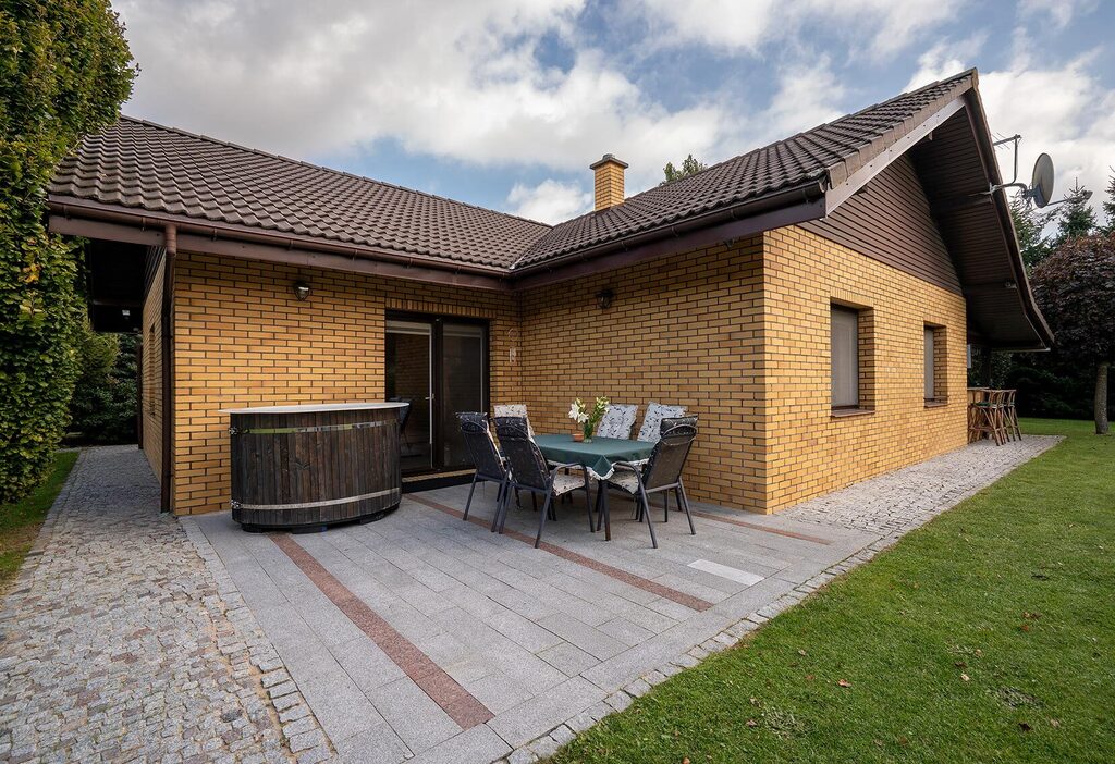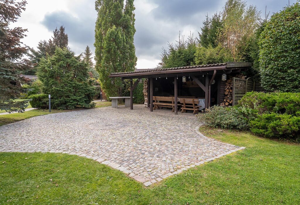 z własnym barem oraz wiatą biesiadną, kostka brukowa dookoła domu.