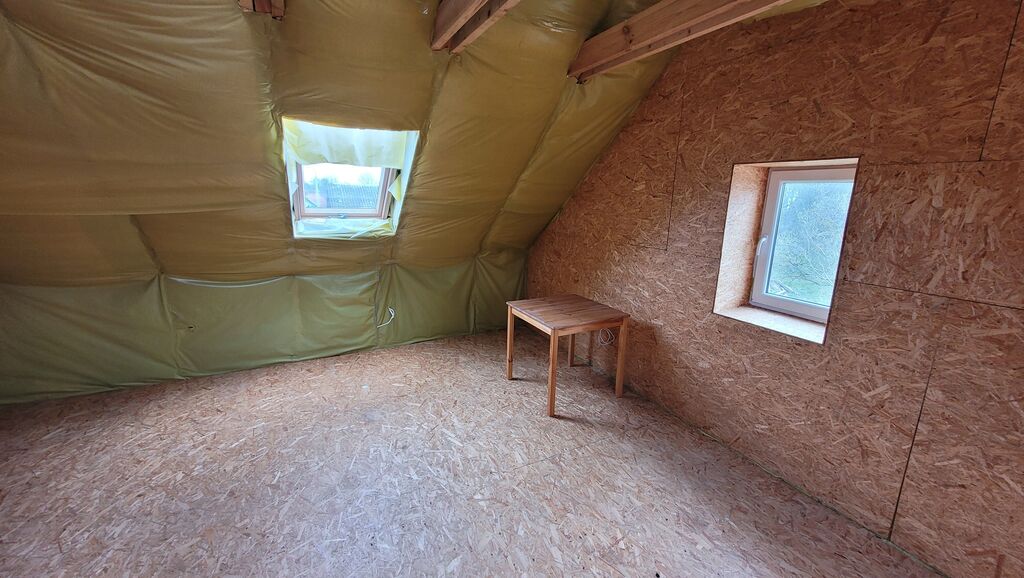 - poddasze: ocieplone wełną mineralną  i podzielone ściankami działowymi dwa pokoje - do wykończenia