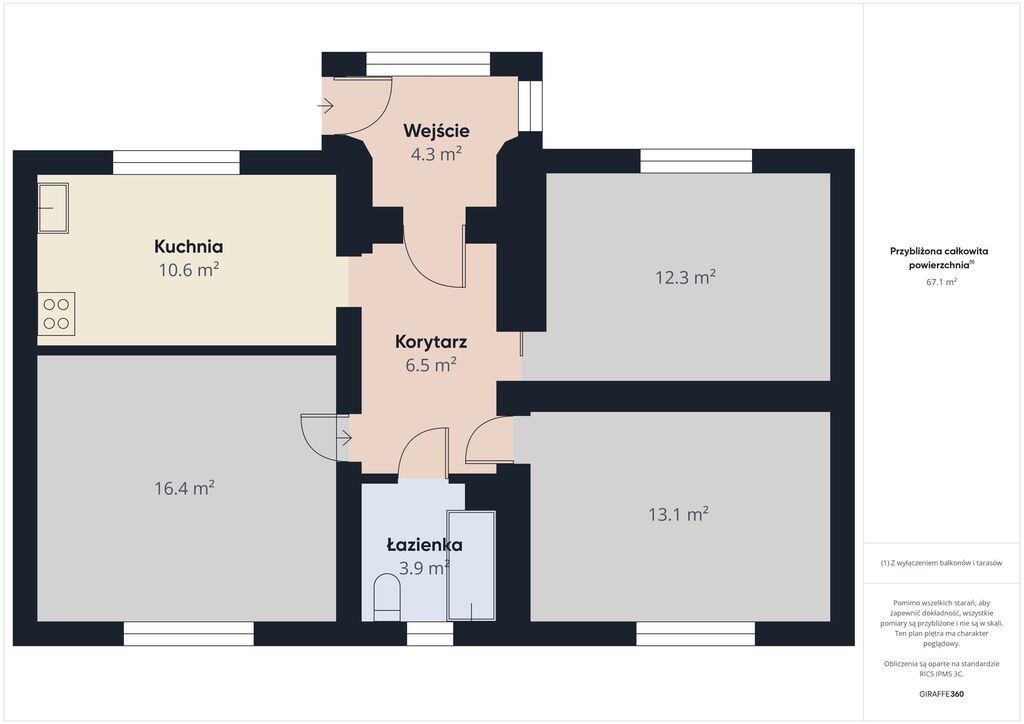 Powierzchnia użytkowa (parter): 67,1 m²