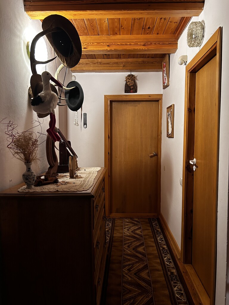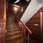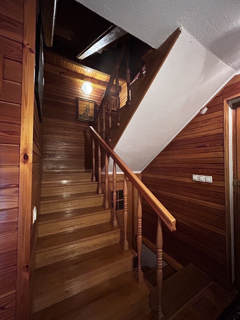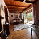 Stolarka okienna drewniana, parkiety, panele, kafle podłogowe. Większość wnętrz domu wykończona drewnem.