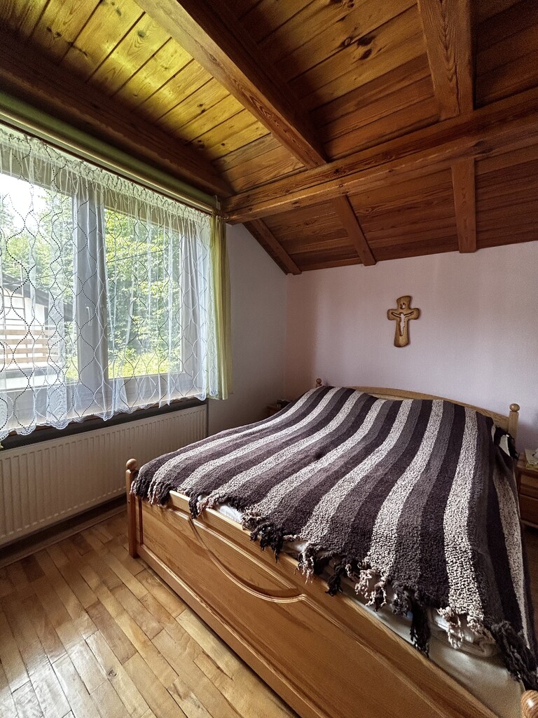 Budynek mieszkalny całoroczny, w zacisznym miejscu z przepięknym widokiem na Stożek, na pasmo górskie Beskidów z dodatkowym ogrzewaniem kominkowym co stwarza przyjemną atmosferę.