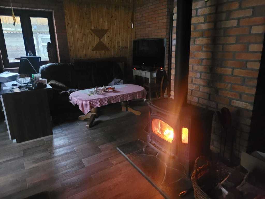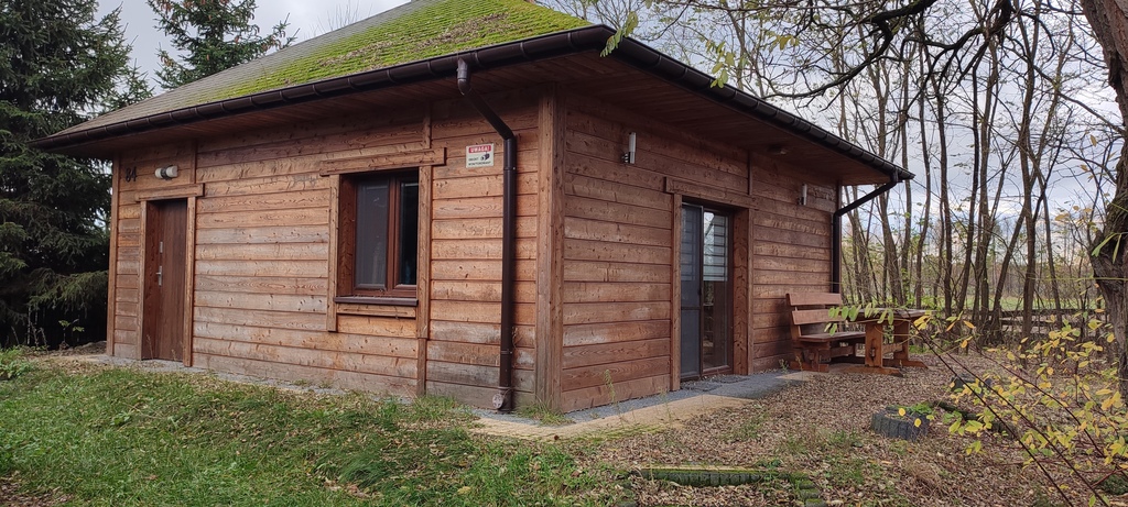 Dom z zewnątrz obity modrzewiem a w środku świerkiem.