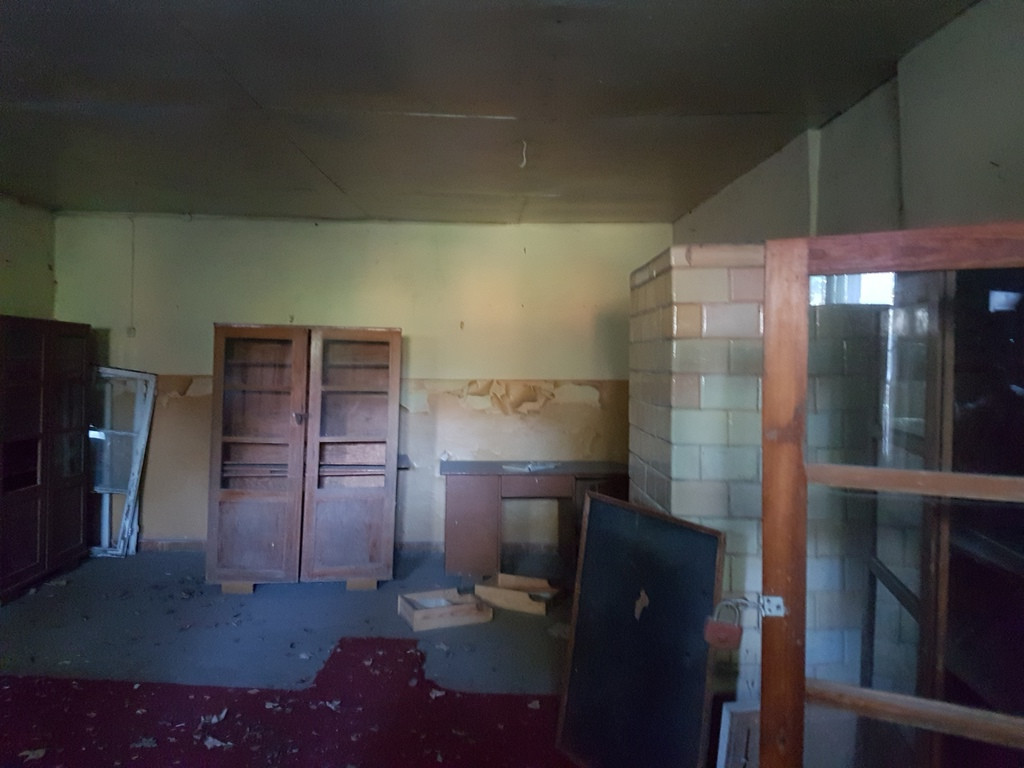 Drewniany budynek ( 76 m2) wymaga gruntownego remontu. W skład budynku wchodzą 2 pokoje i łazienka. Budynek usytuowana na wzgórzu z przylegającymi działkami rolnymi ( 1,6730 ha) i łąkami (0,29 ha) stanowiącymi jedną nieruchomość.