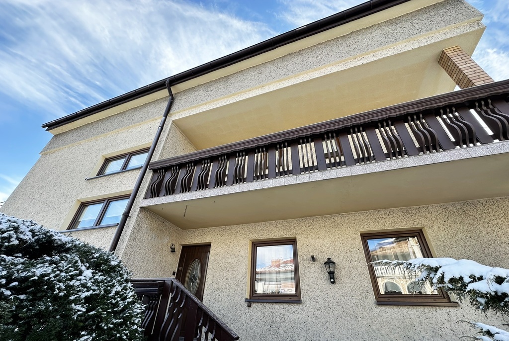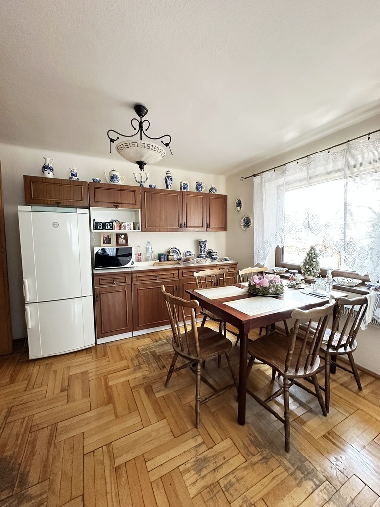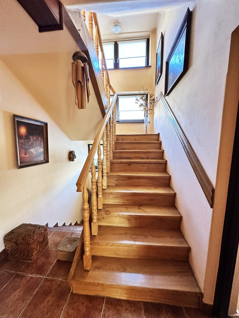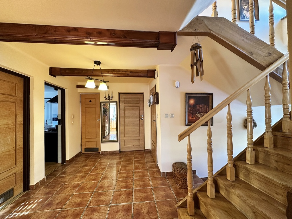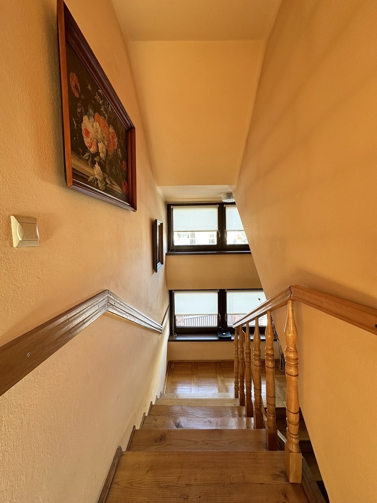 PIĘTRO: 3 pokoje, kuchnia, łazienka, toaleta, dwa balkony.