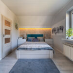 Poddasze (1): - sypialnia główna (16 m²) z własną łazienką (5,6 m²) i klimatyzacją,