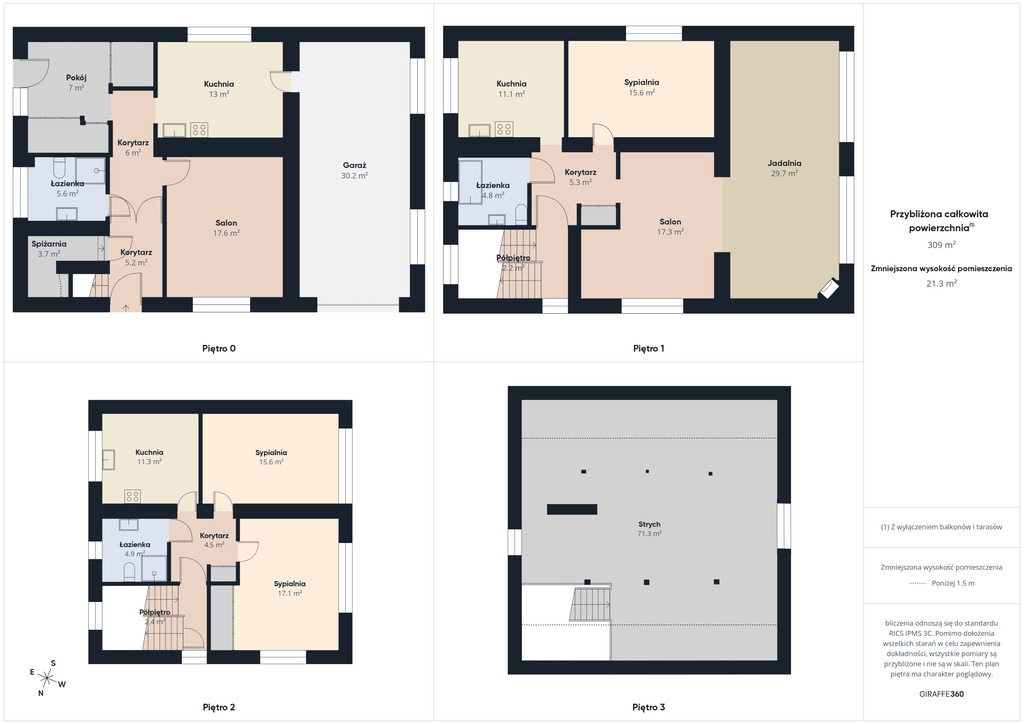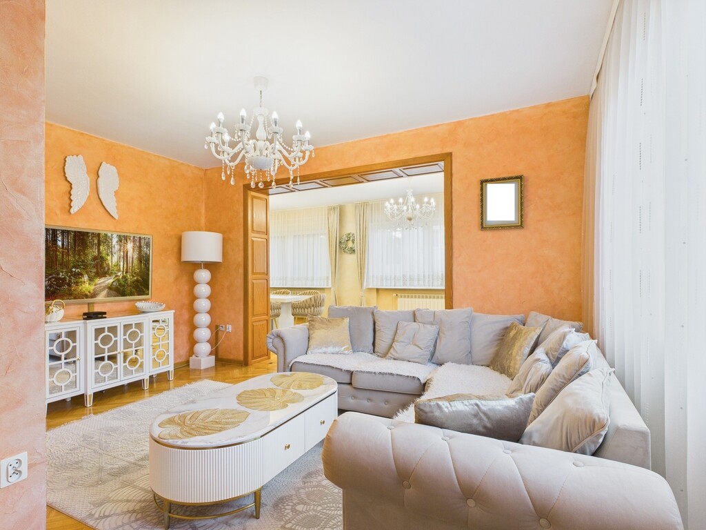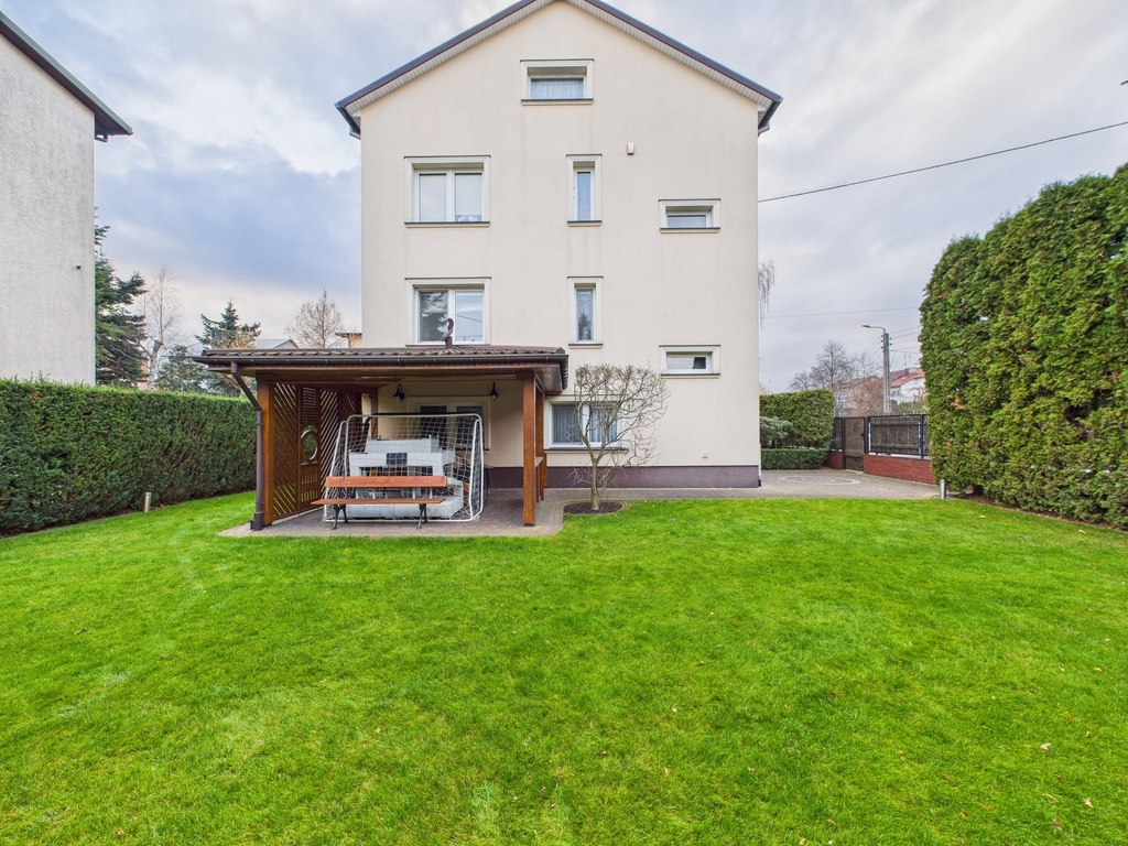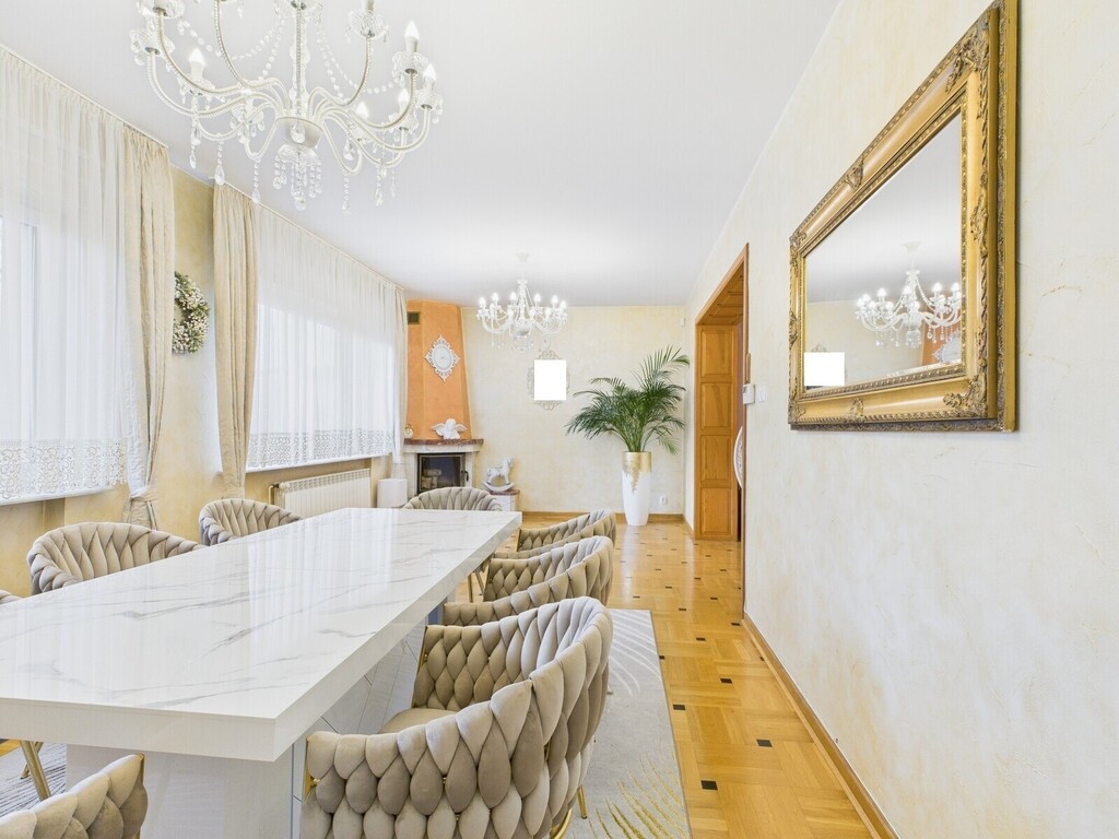 Dom o imponującej powierzchni 309 m2 oferuje 7 przestronnych pokoi ,3 łazienki po jednej na każdej kondygnacji
