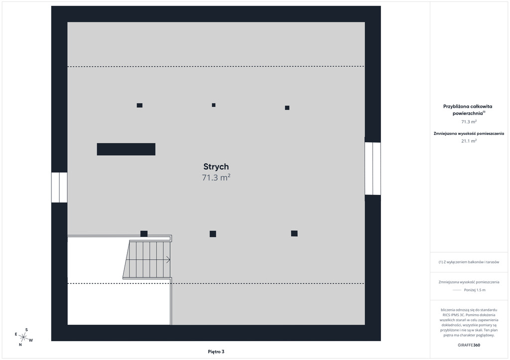 - Strych 71m2 , (idealny do adaptacji według indywidualnych potrzeb).