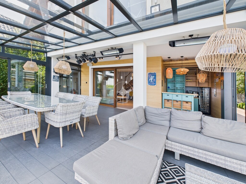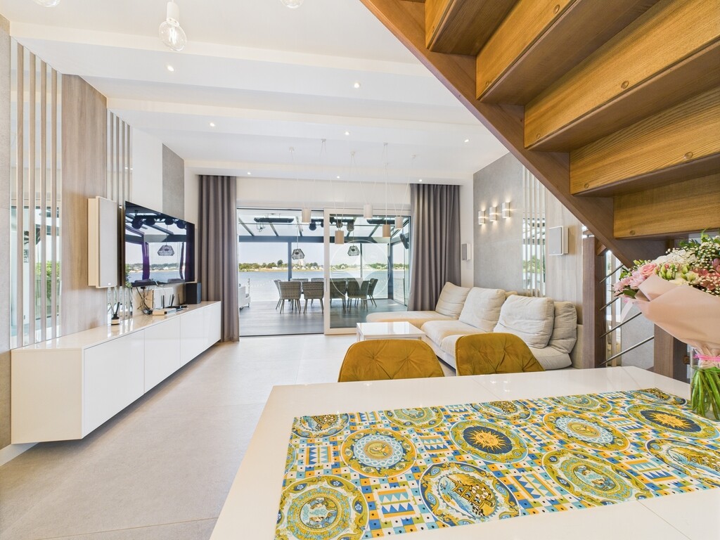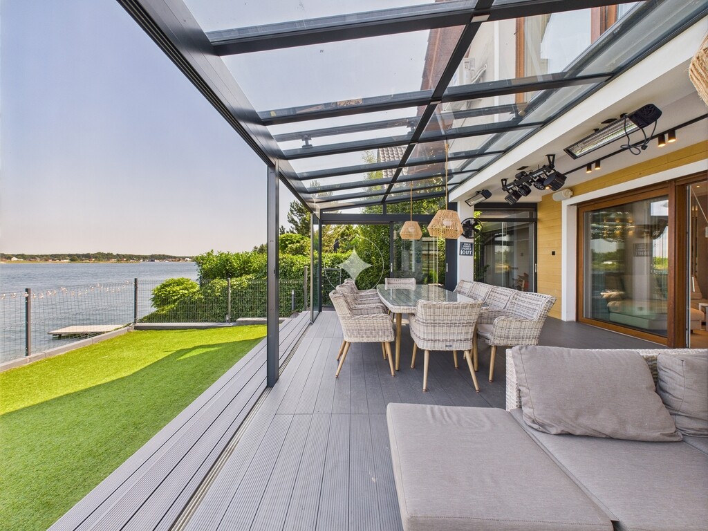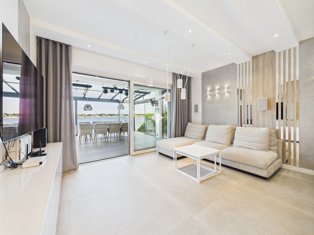 Dom jest w idealnym stanie, wykończony w wysokim standardzie, w pełni umeblowany i wyposażony, gotowy do zamieszkania. Posiada prywatną plaże oraz przystań na sprzęt wodny. Ogród zimowy wyposażony jest w elektryczne markizy, wysokiej jakości nagłośnienie zewnętrzne, oświetlenie oraz promienniki ciepła.