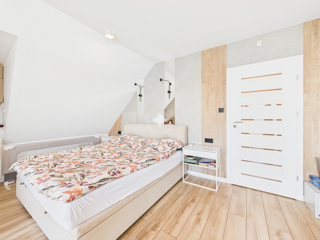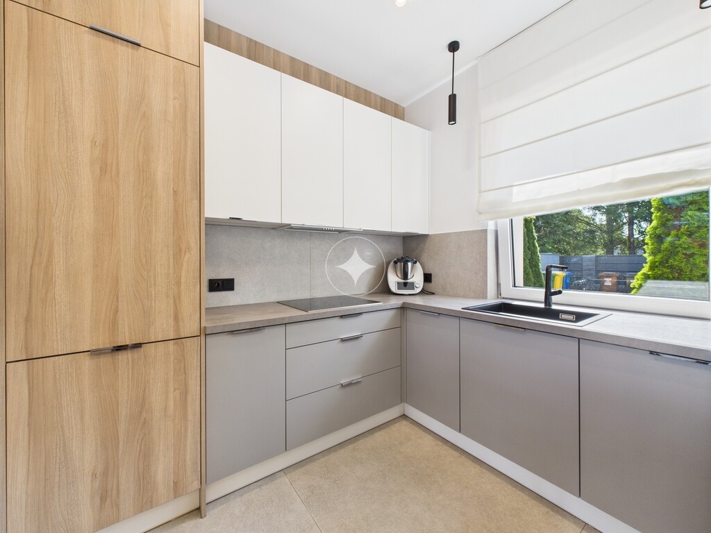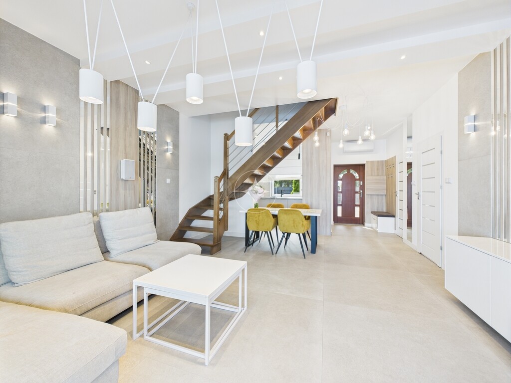 Pomieszczenia są klimatyzowane, posiada ogrzewanie podłogowe. Meble zostały wykonane na zamówienie, w zabudowie pod wymiar. Cały sprzęt jak i materiały użyte do wykończenia są najwyższej jakości.