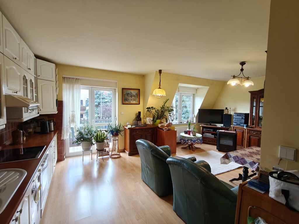 • komfortowy salon z aneksem kuchennym,