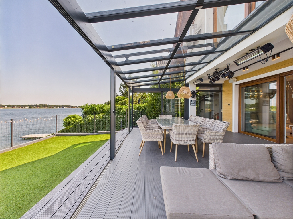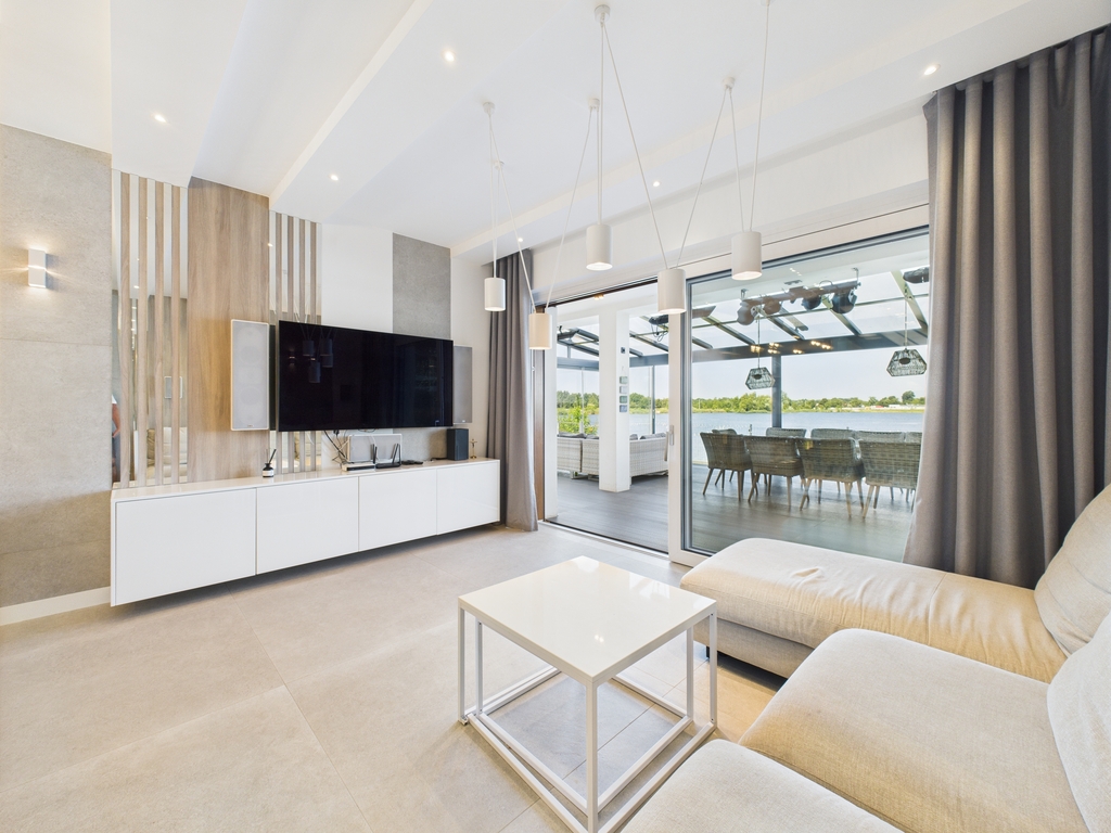 Dom jest w idealnym stanie, wykończony w wysokim standardzie, w pełni umeblowany i wyposażony, gotowy do zamieszkania. Posiada prywatną plaże oraz przystań na sprzęt wodny. Ogród zimowy wyposażony jest w elektryczne markizy, wysokiej jakości nagłośnienie zewnętrzne, oświetlenie oraz promienniki ciepła.