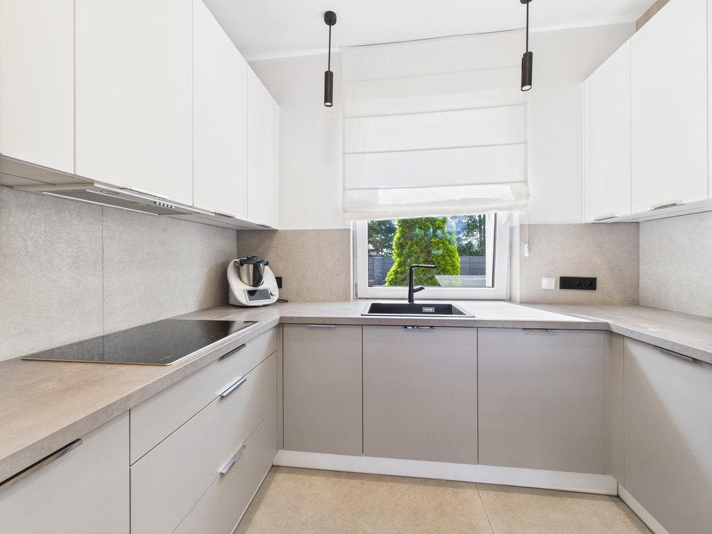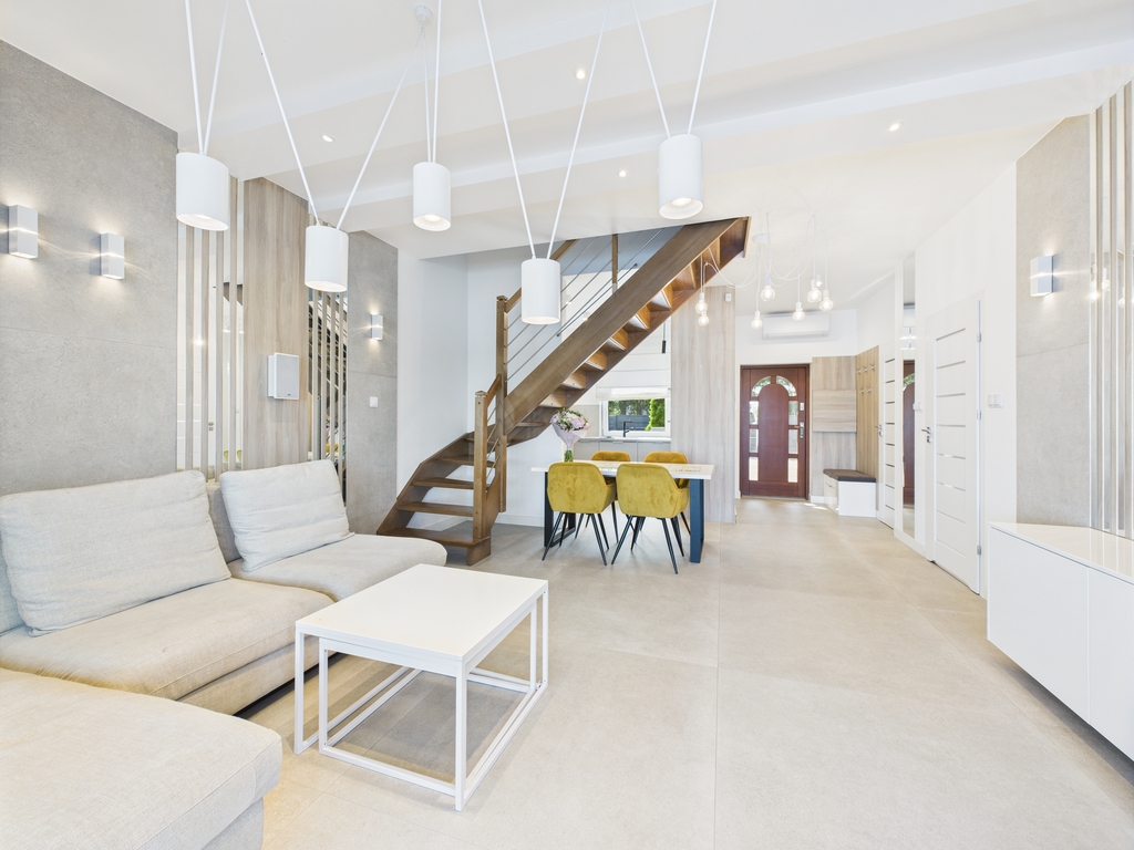 Pomieszczenia są klimatyzowane, posiada ogrzewanie podłogowe. Meble zostały wykonane na zamówienie, w zabudowie pod wymiar. Cały sprzęt jak i materiały użyte do wykończenia są najwyższej jakości.