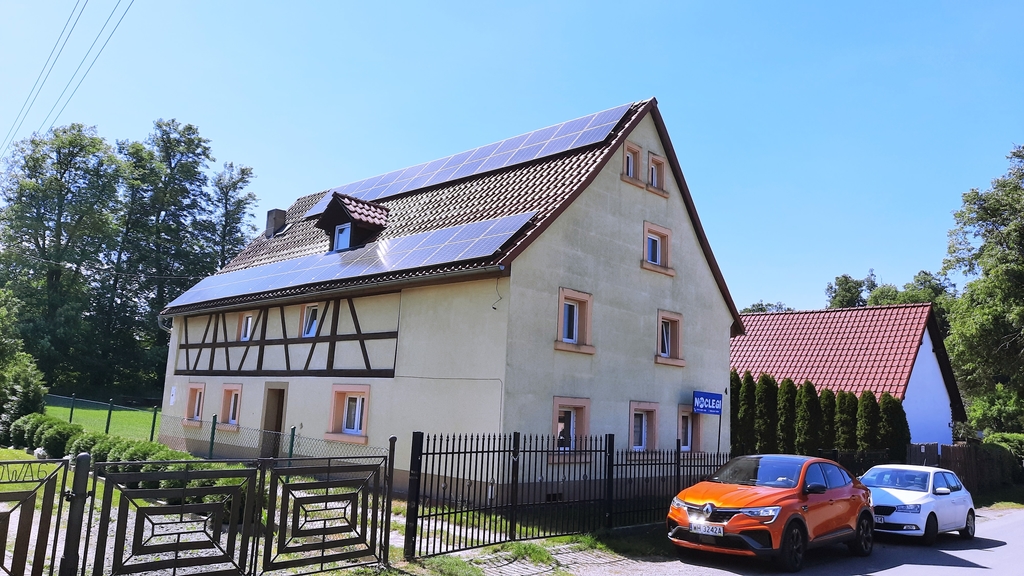 - Na dachu dachówka ceramiczna i panele fotowoltaiczne.
