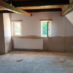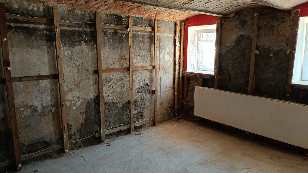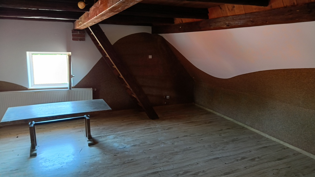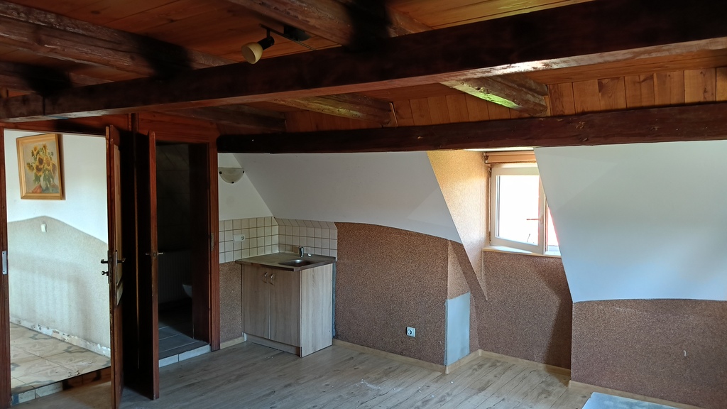 Pomieszczenia po prawej stronie wewnątrz budynku do remontu po zalaniu ( awaria instalacji wodnej w łazience na najwyższej kondygnacji). Pozostałe pomieszczenia ( lewa strona) do odświeżenia.