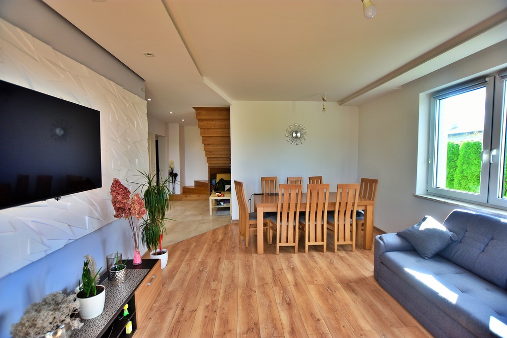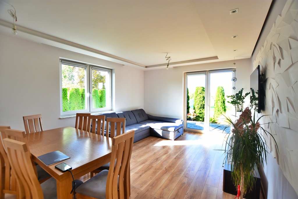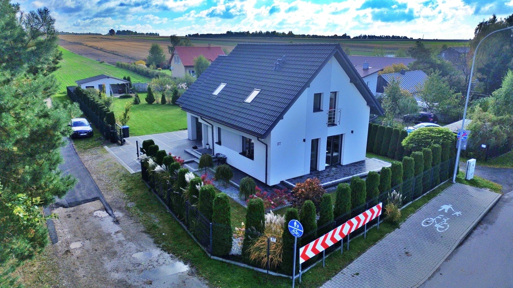 Dzień dobry, ofertą sprzedaży jest piękny dom jednorodzinny z 2019 roku zlokalizowany w miejscowości Żabia Wola, gm. Głusk.
