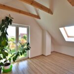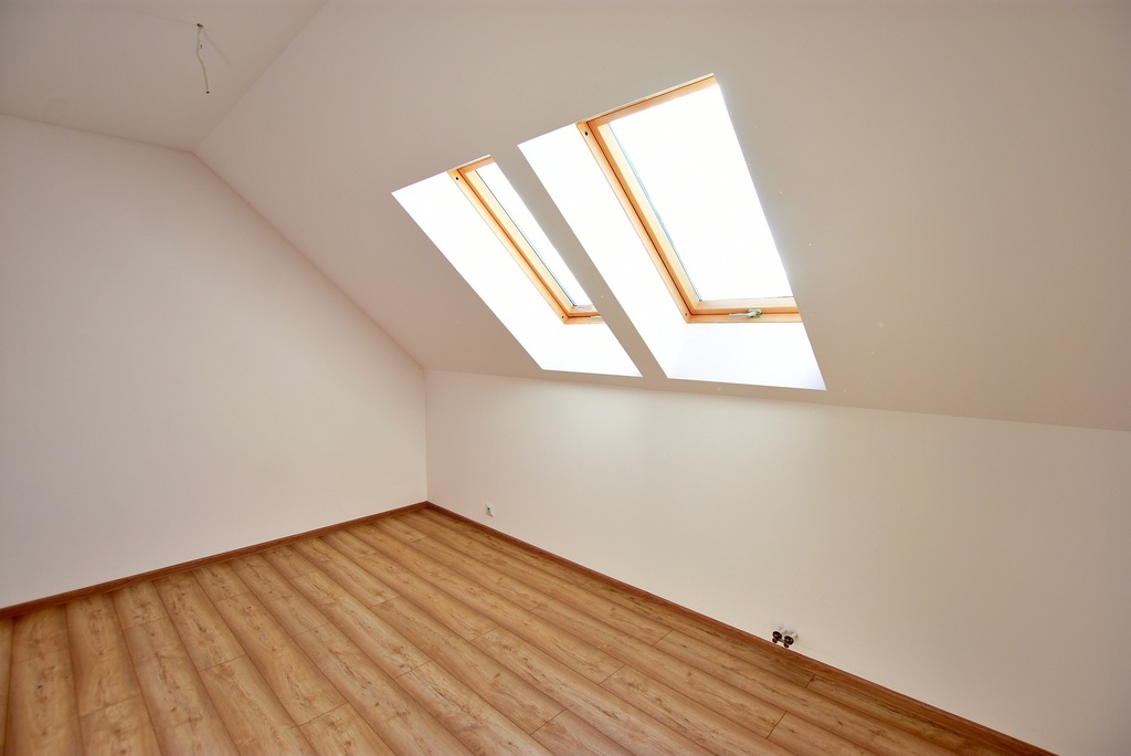 - Strop drewniany, dach ocieplony wełną o grubości 15 cm.