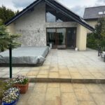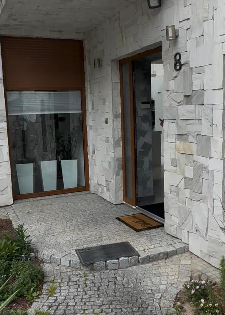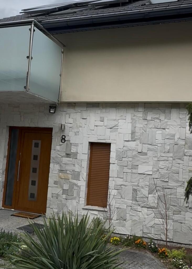 Elewacja domu obłożona kamieniem co robi niesamowite wrażenie.