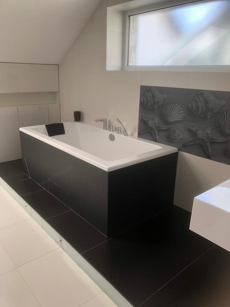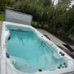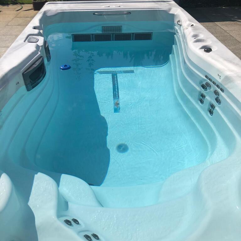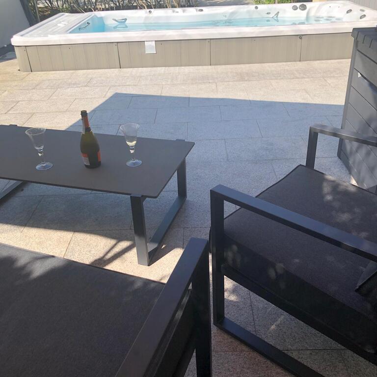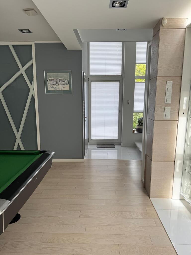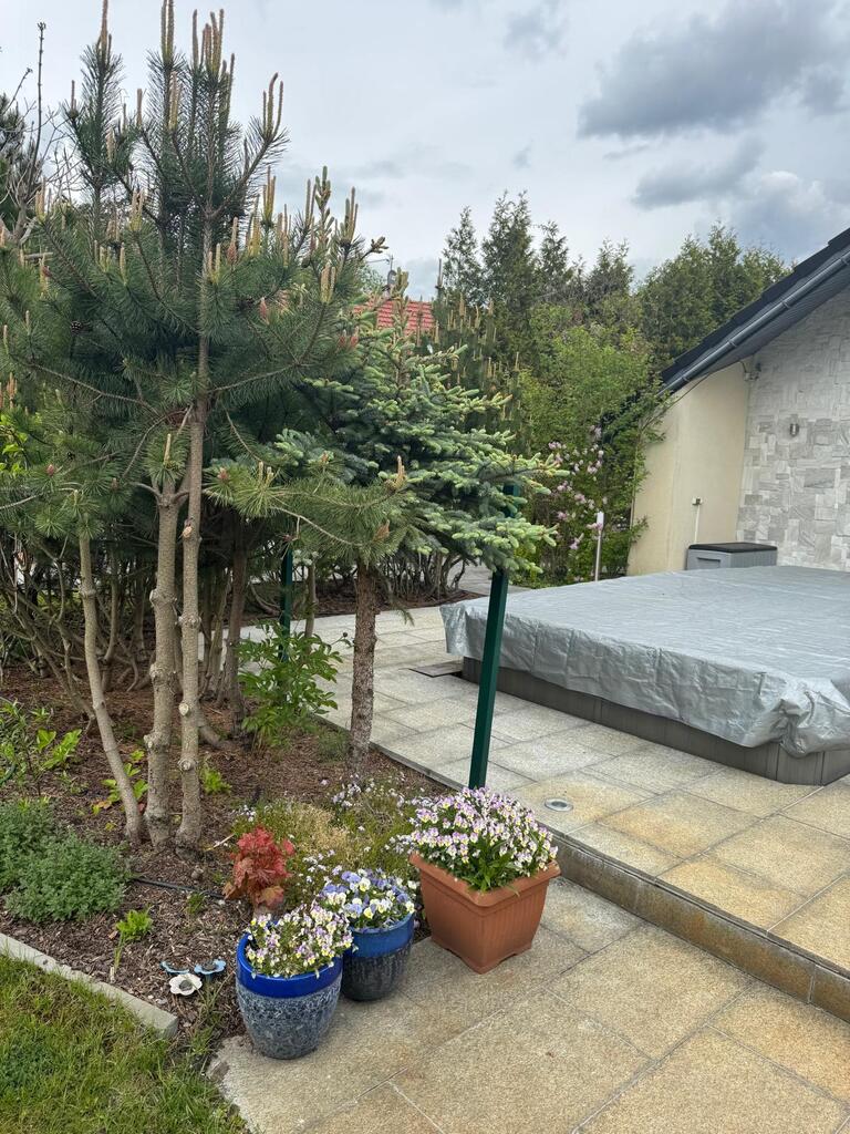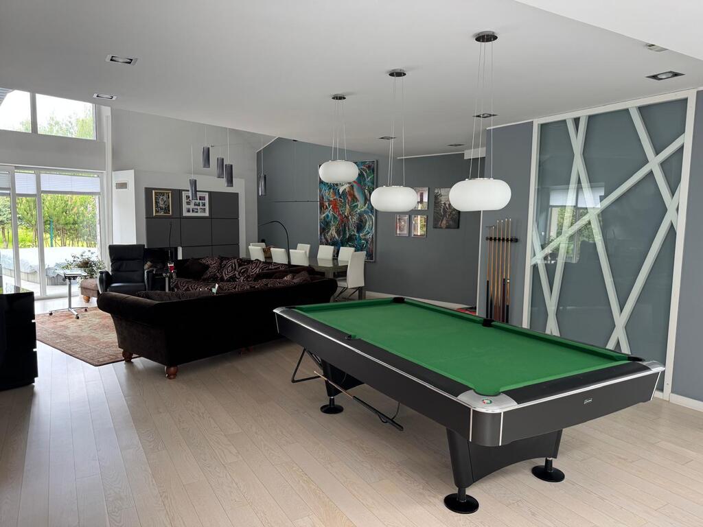 Zaraz po wyjściu z salonu na tarasie znajduje się basen kryty, całoroczny, z masażem, podświetlany.