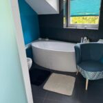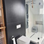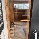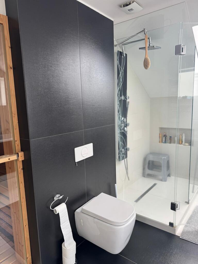 Piętro - dwie sypialnie, gabinet, dwie łazienki, - jedna z nich z sauną oraz pralnia