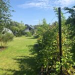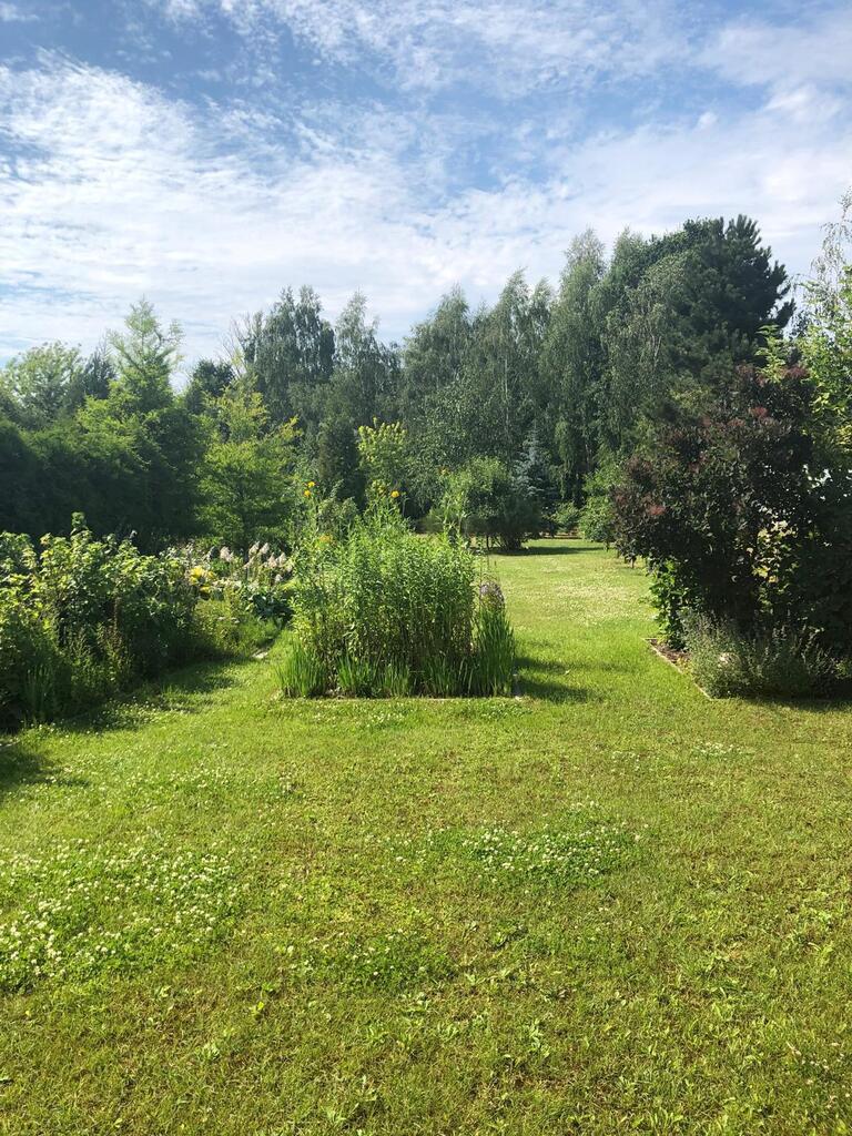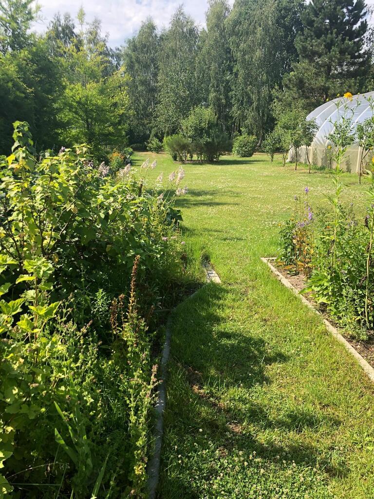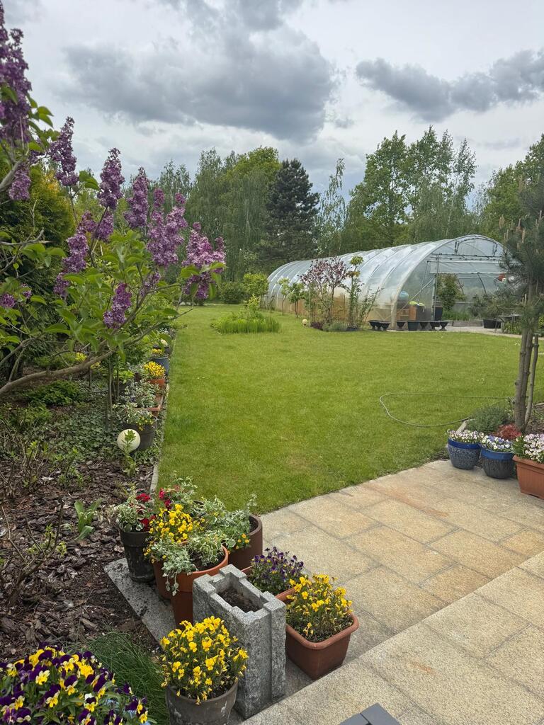 Przepiękny ogród jak z bajki z owocowymi krzewami, kwiatami, krzewami ozdobnymi i drzewami. Na działce znajduje się domek ogrodowy. Działka dobiega do granic rzeki, można spacerować w przepięknym otoczeniu zieleni słuchając szumu przepływającej wody.
