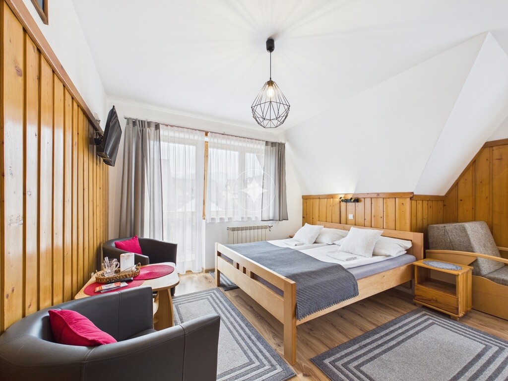 Obiekt oferuje 8 komfortowych, w pełni wyposażonych pokoi gościnnych, z których rozpościerają się piękne, malownicze widoki na całe pasmo Tatr! Każdy pokój posiada prywatną łazienkę, co znacząco podnosi standard i atrakcyjność oferty dla gości. Pensjonat serwuje śniadania w formie bufetu, w części wspólnej na poziomie 0.