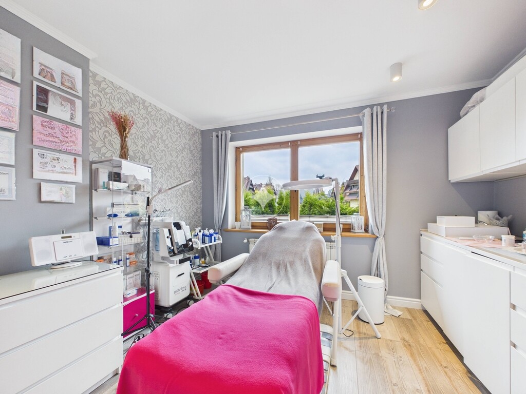 Dodatkowo: na piętrze budynku znajduje się w pełni wyposażony i prosperujący salon kosmetyczny, również posiadający stałą bazę klientów. Stanowi on doskonałe uzupełnienie działalności noclegowej oraz dodatkowe, stabilne źródło dochodu.
