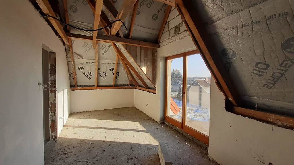 Na poddaszu: 3 pokoje, garderoba oraz łazienka z WC.