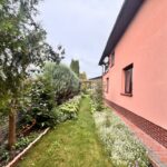 * Zadbana działka obsadzona jest roślinami ozdobnymi i drzewkami owocowymi.