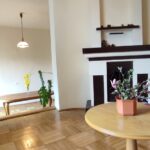 duży salon 14 m2 z którego jest wyjście na balkon, jasna i przestronna kuchnia 12 m2, przedpokój 8 m2, otwarty pokój kominkowy