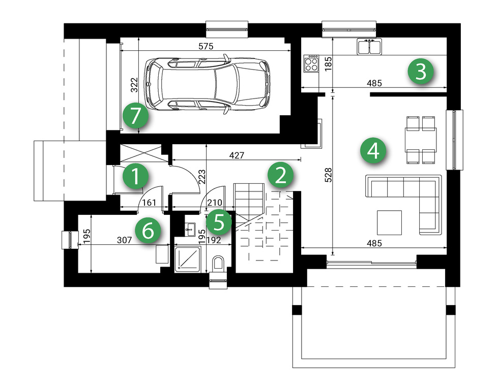 Rozkład pomieszczeń( parter):