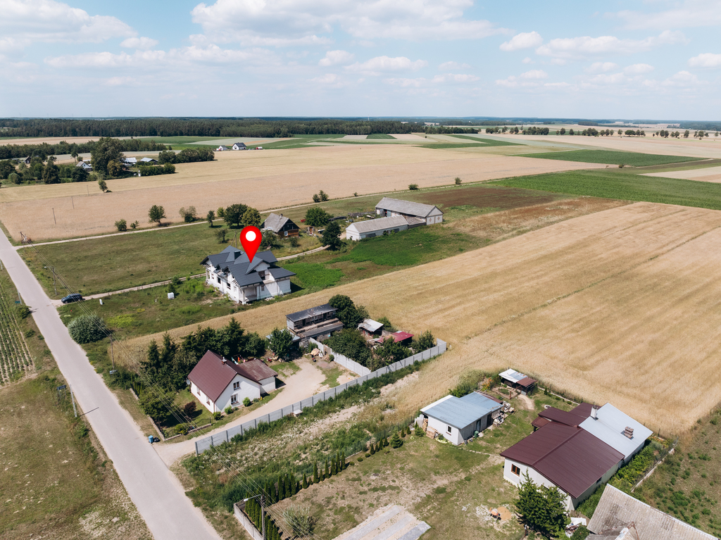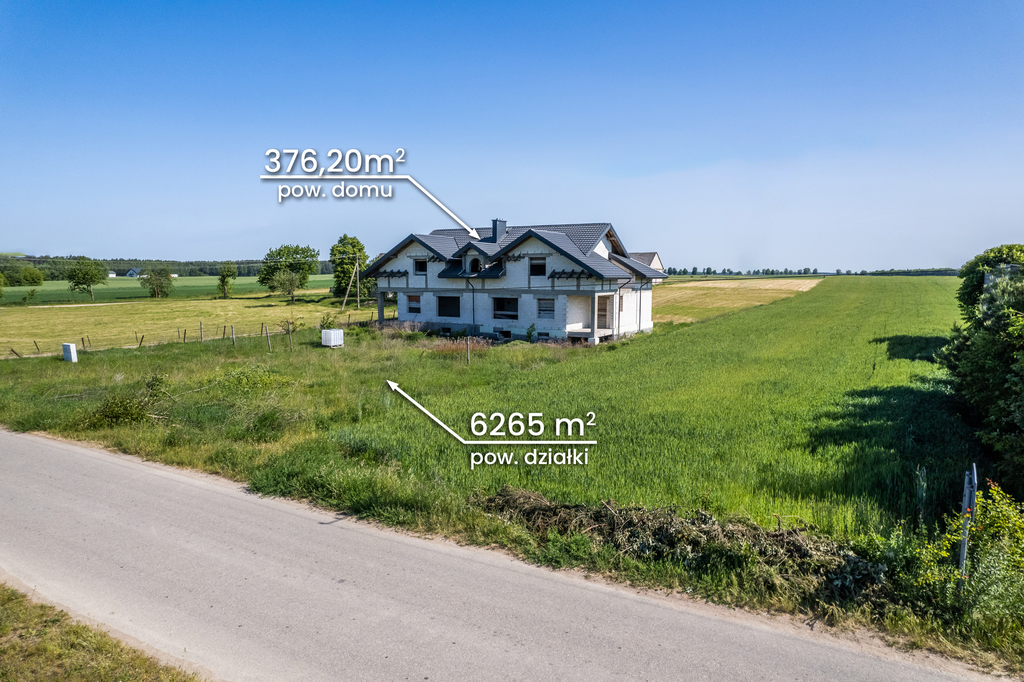 Dom o powierzchni użytkowej 376,20m2, położony na działkach o łącznej powierzchni 6265m2.