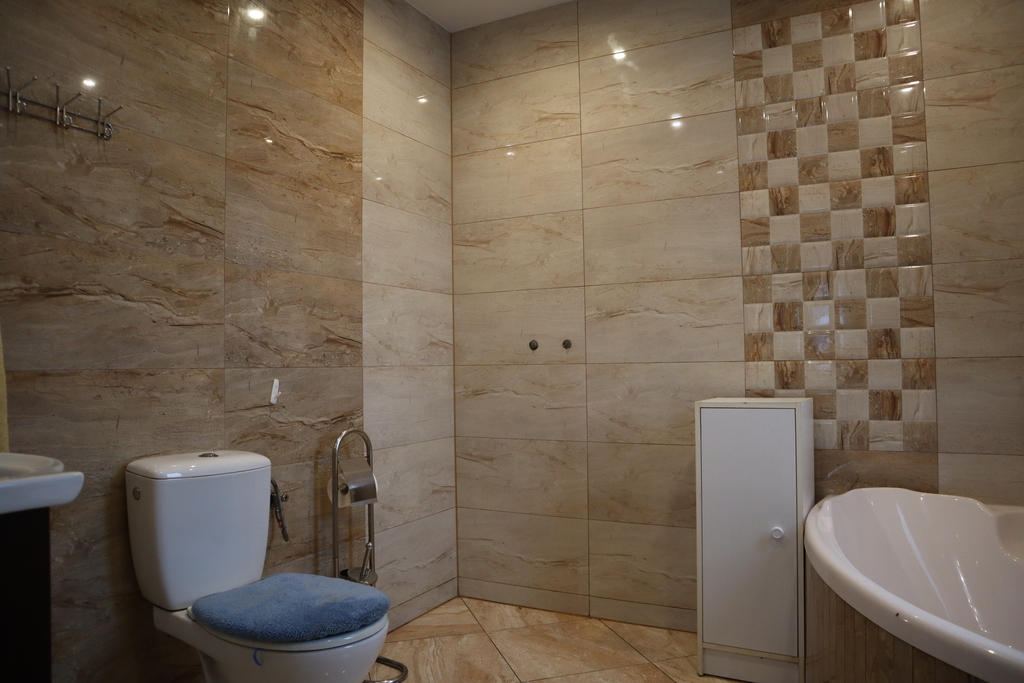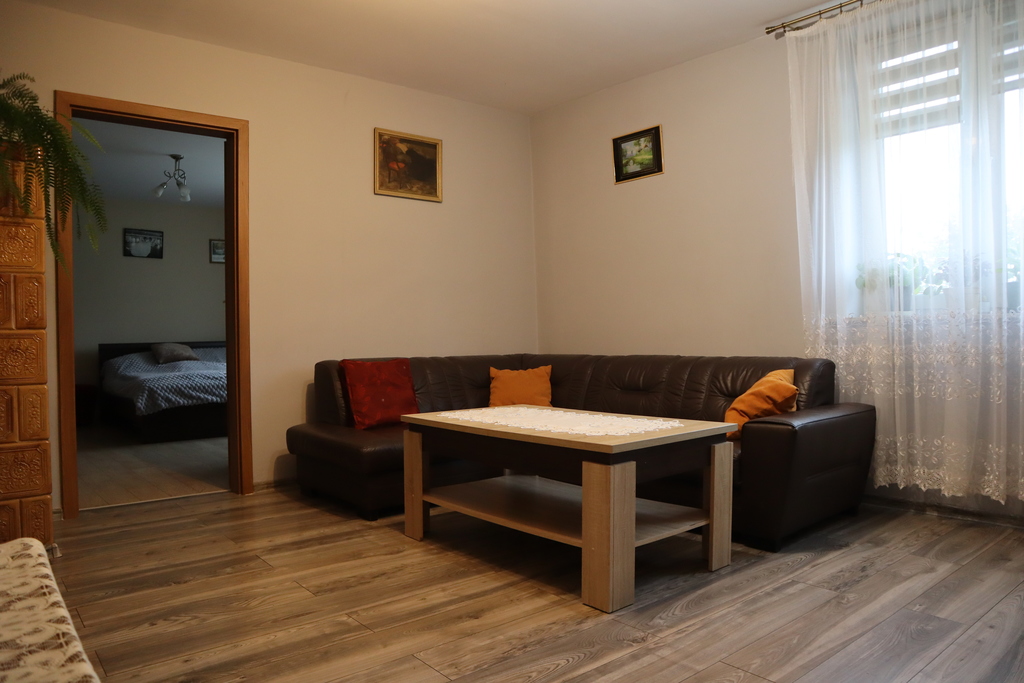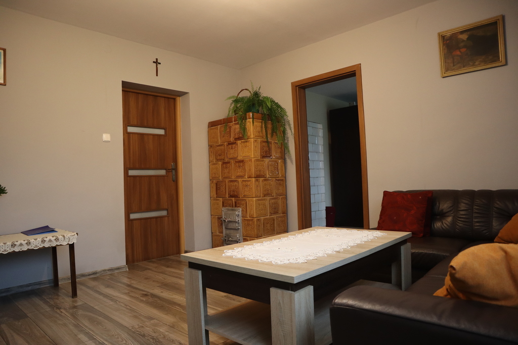 Pomieszczenia: salon, sypialnia, kuchnia, łazienka, spiżarnia, korytarz