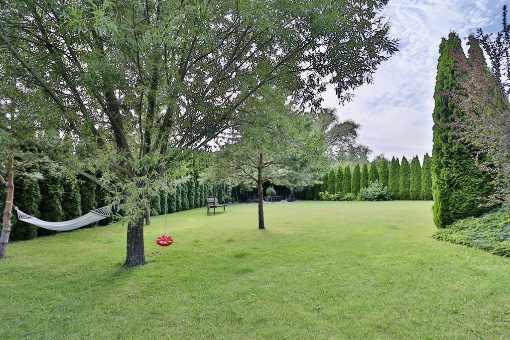 Działka jest w pełni ogrodzona z wyjąkowymi zasadzeniami.